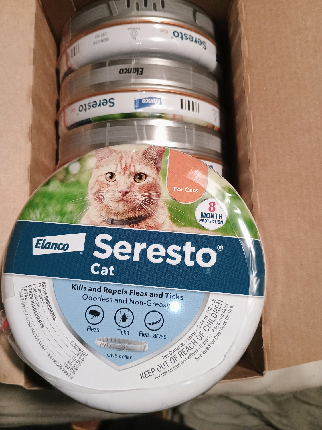 I am very impressed with the Seresto flea/tick collars I purchased for my 2 cats. They are outside a lot, and like to play in the woods. I put the collars on about 6 weeks ago and so far there has been no evidence of any kind of critter on them. It was so easy to put a collar on them once for 8 months versus the drops I had always used previously each month which left their fur oily no matter how slowly and carefully I used it. Price wise it was significantly cheaper than purchasing 8 months of the (good quality) drops I had been using. I was also pleased to find that there were 3 VERY visible reflectors you could put on the collars since my cats are sometimes out after dark.